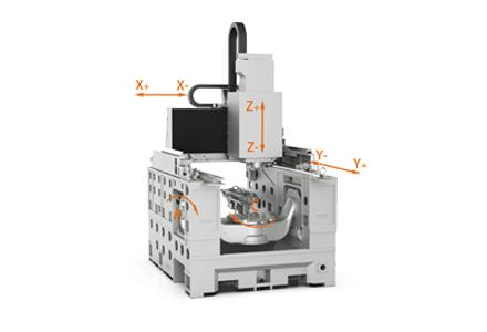 FMC-600V 五軸加工中心整體采用龍門式結(jié)構(gòu),雙立柱高架結(jié)構(gòu),Y軸采用雙驅(qū)結(jié)構(gòu),并配置AC軸搖籃式回轉(zhuǎn)工作臺(tái),可一次裝夾完成銑、鉆、擴(kuò)、鏜、攻、锪等多工序的高精、高效加工。
